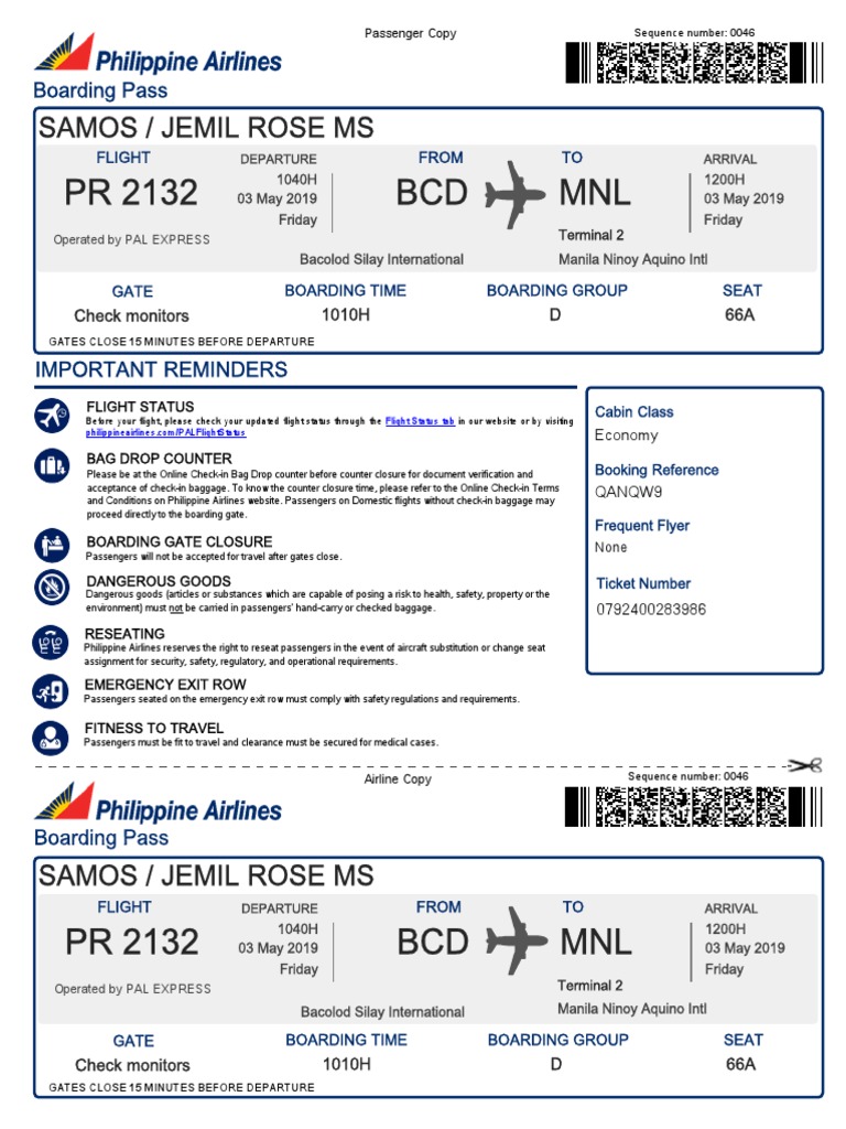 A child ages 2 to less than 8 years old should always be accompanied by an adult passenger. You may call pal reservations at 632 8855 8888 or go to the nearest pal ticket office. 2019 in all channels may check in through their e ticket number and last name.